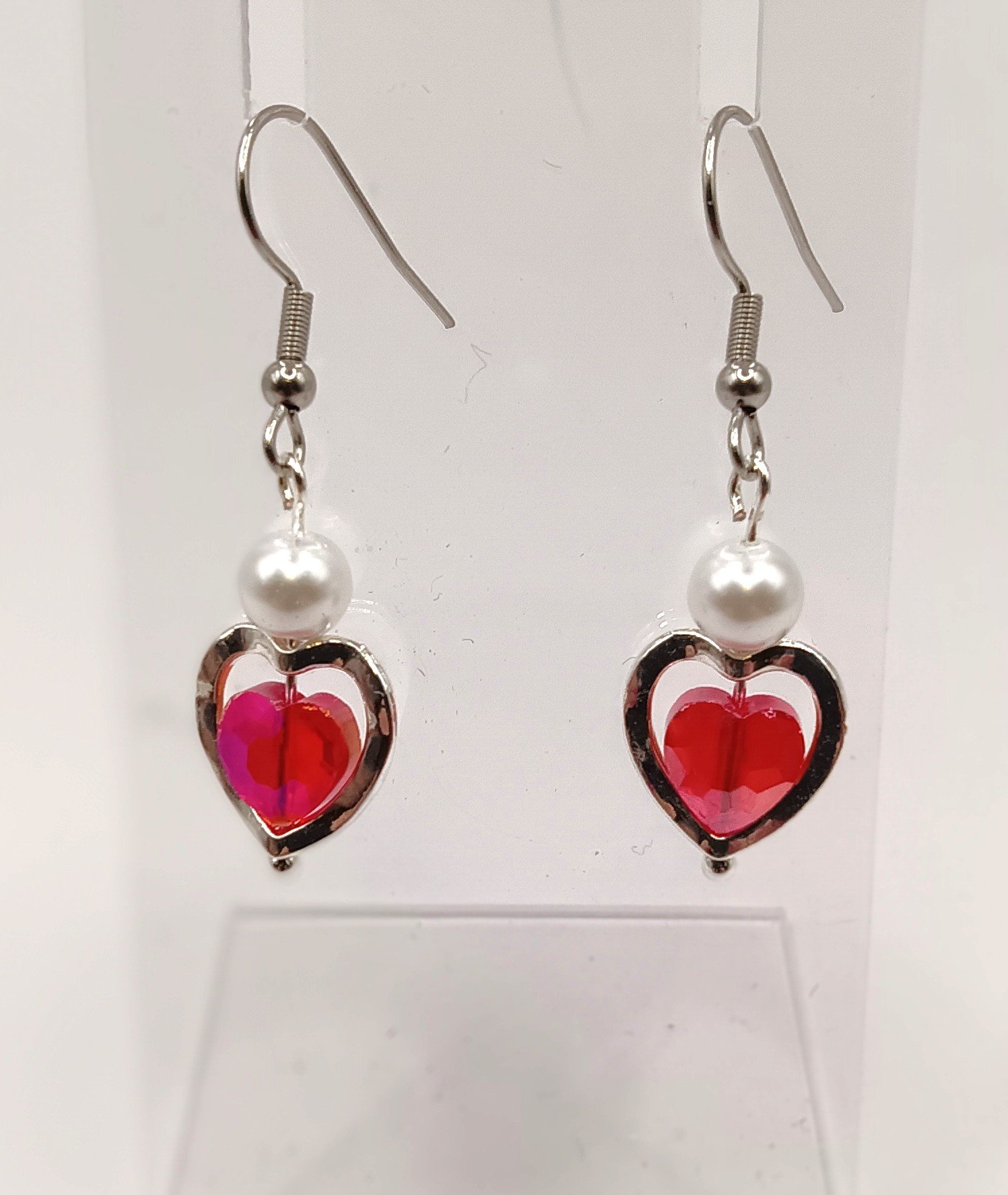 SVE 31 Silver-colored Red Heart and Faux Pearl
