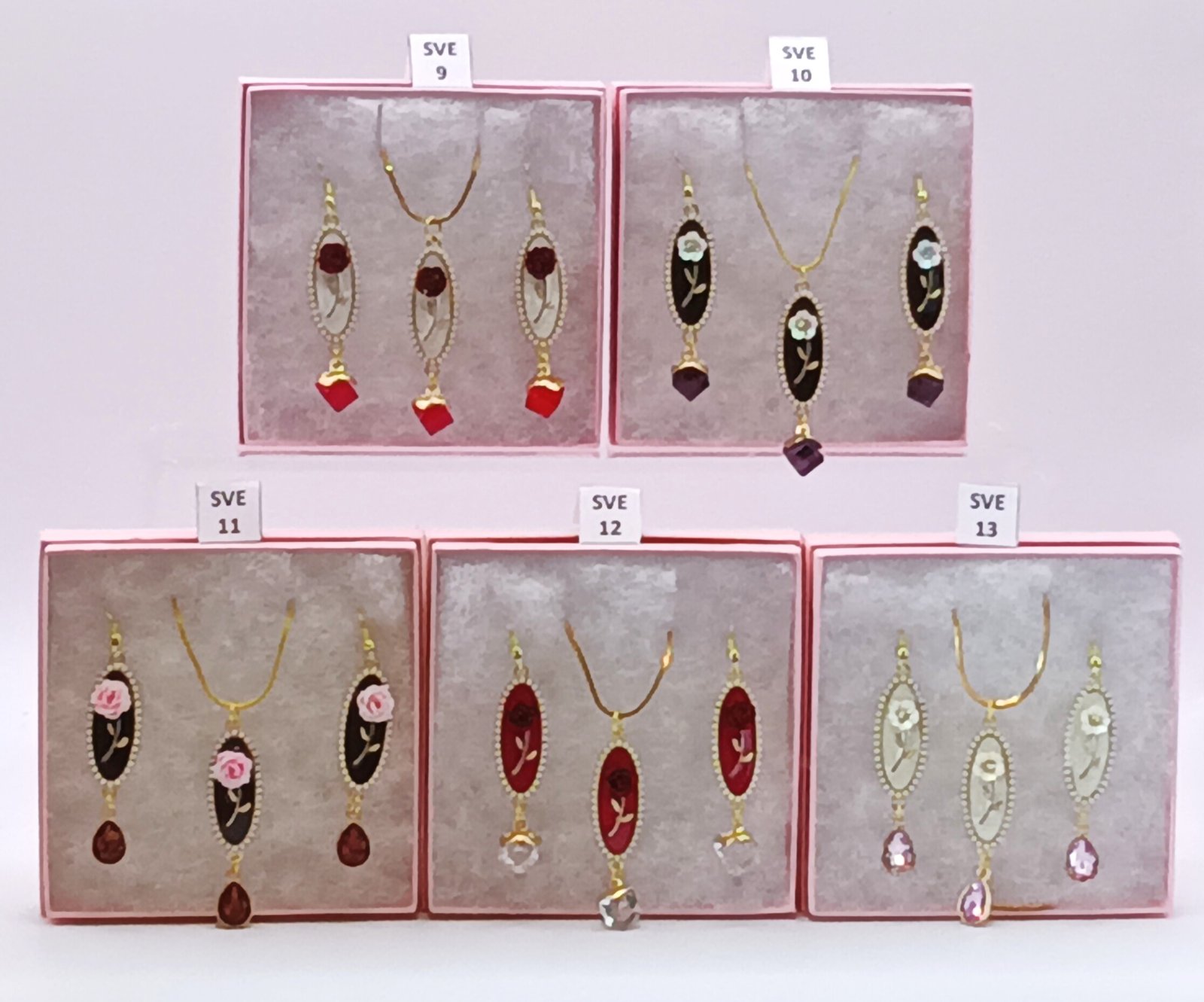 | SVE 13 – Earrings and Necklace Pink Rose Gift Set | $25 |