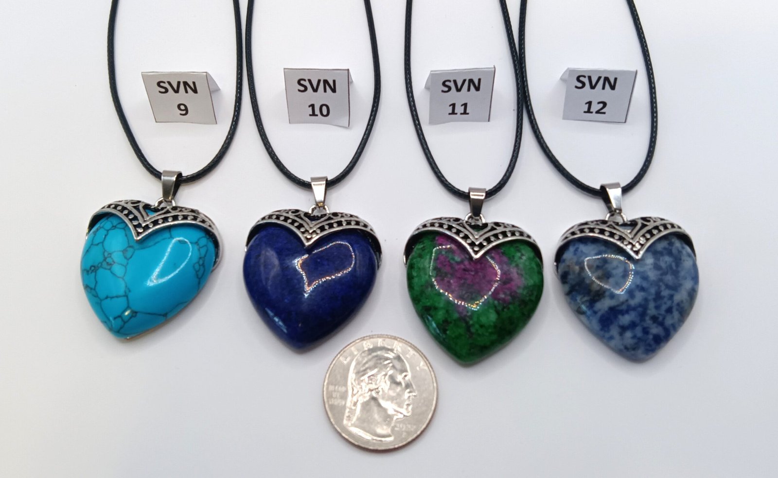 Large Heart Pendants on Black Cord